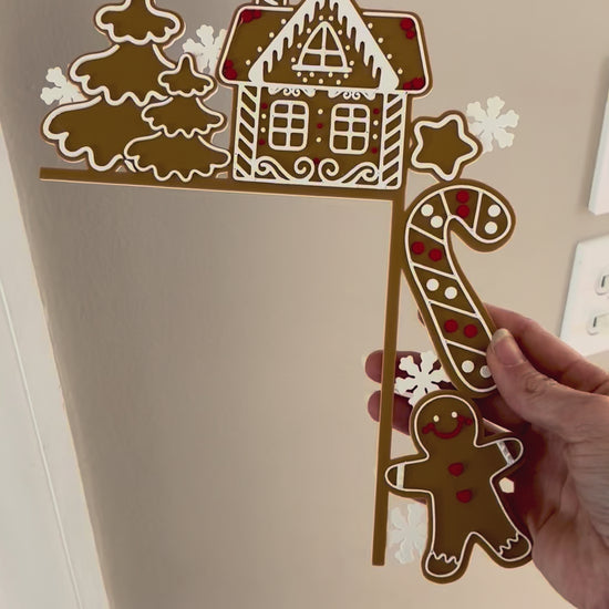 Gingerbread theme corner decor to help you decorate this winter season. You choose if you want it to rest over your right or left corner.