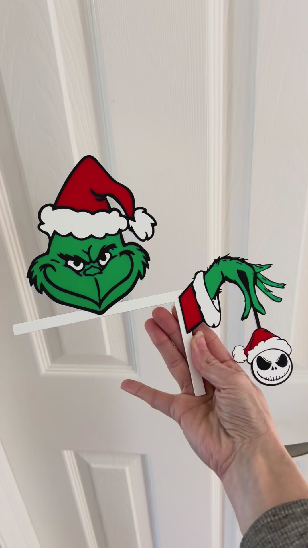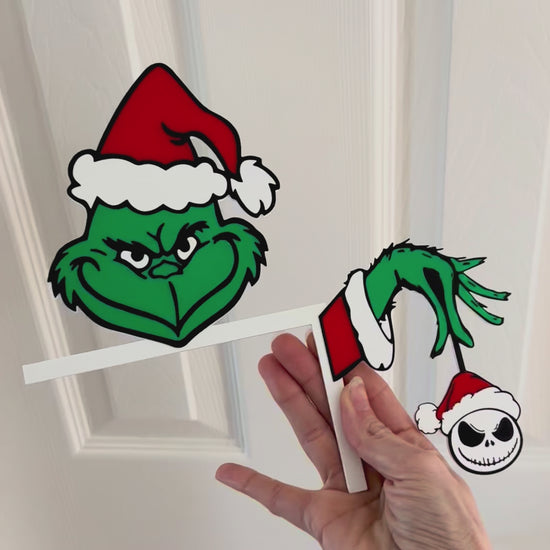 The Grinch is ready to celebrate the holiday with you and Jack Skellington! You choose if you want them to rest over your right or left corner.