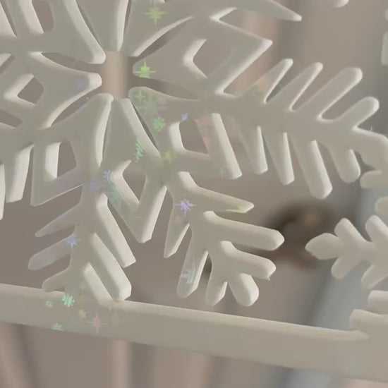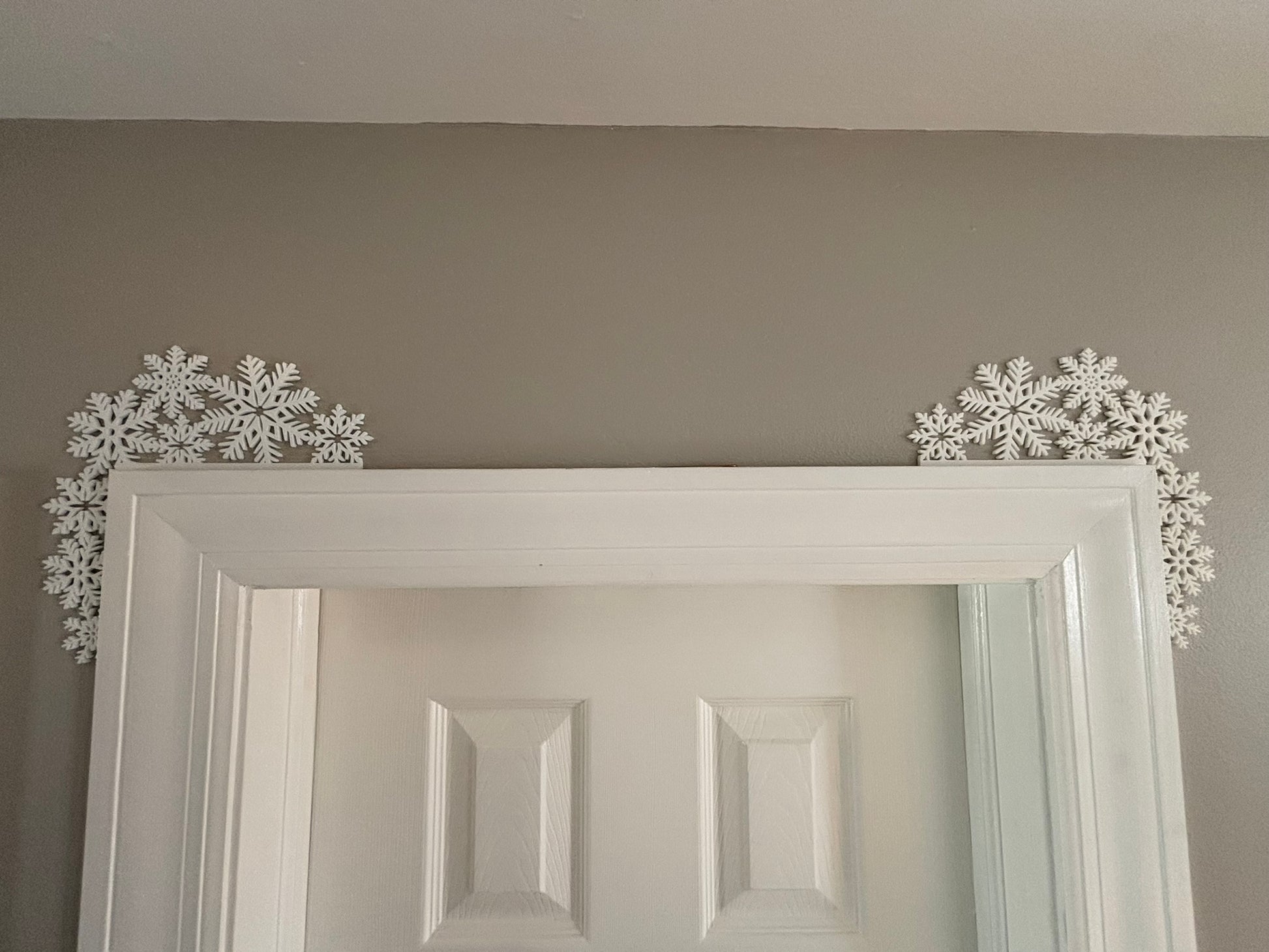 Snowflakes theme corner decor to help you decorate this winter season. You choose if you want it to rest over your right or left corner. Features a "rainbow holographic" finish to give it a nice sparkly effect.