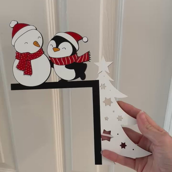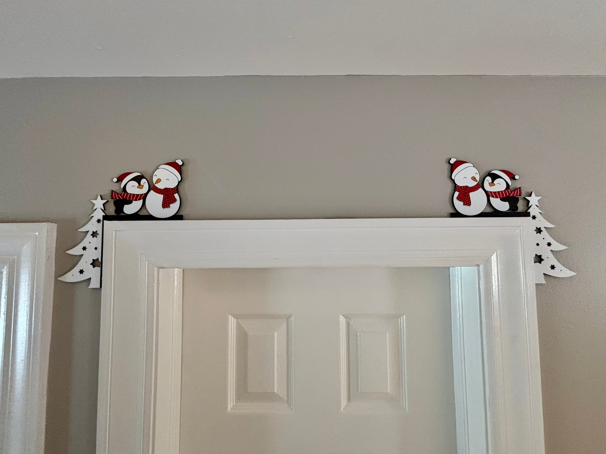 This adorable penguin and snowman are ready to celebrate winter with you!! You choose if you want him to rest over your right or left corner.