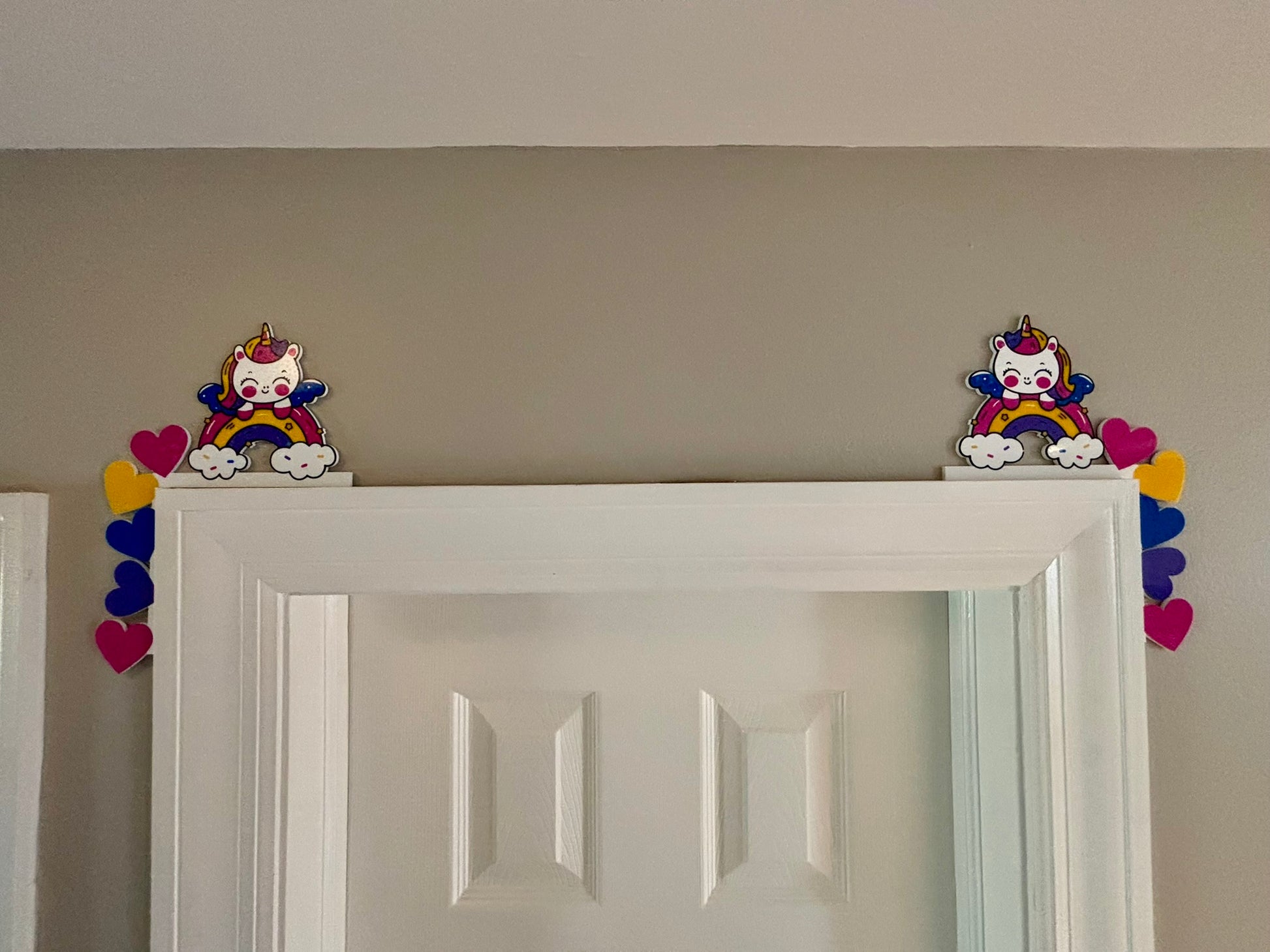 This beautiful unicorn is poised and ready to guard your door wary! You choose if you want her to rest over your right or left corner.